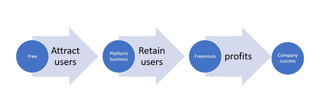 Free pattern entails that a company offers its core product free of charge (Michael Geiss, 2018).